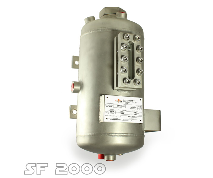 La gama está disponible en diferentes niveles de presión con cabezales cubiertos, mirilla para monitoreo de nivel y con o sin bobina de enfriamiento. Los depósitos SF están equipados de serie con todas las conexiones y soportes necesarios del sistema.